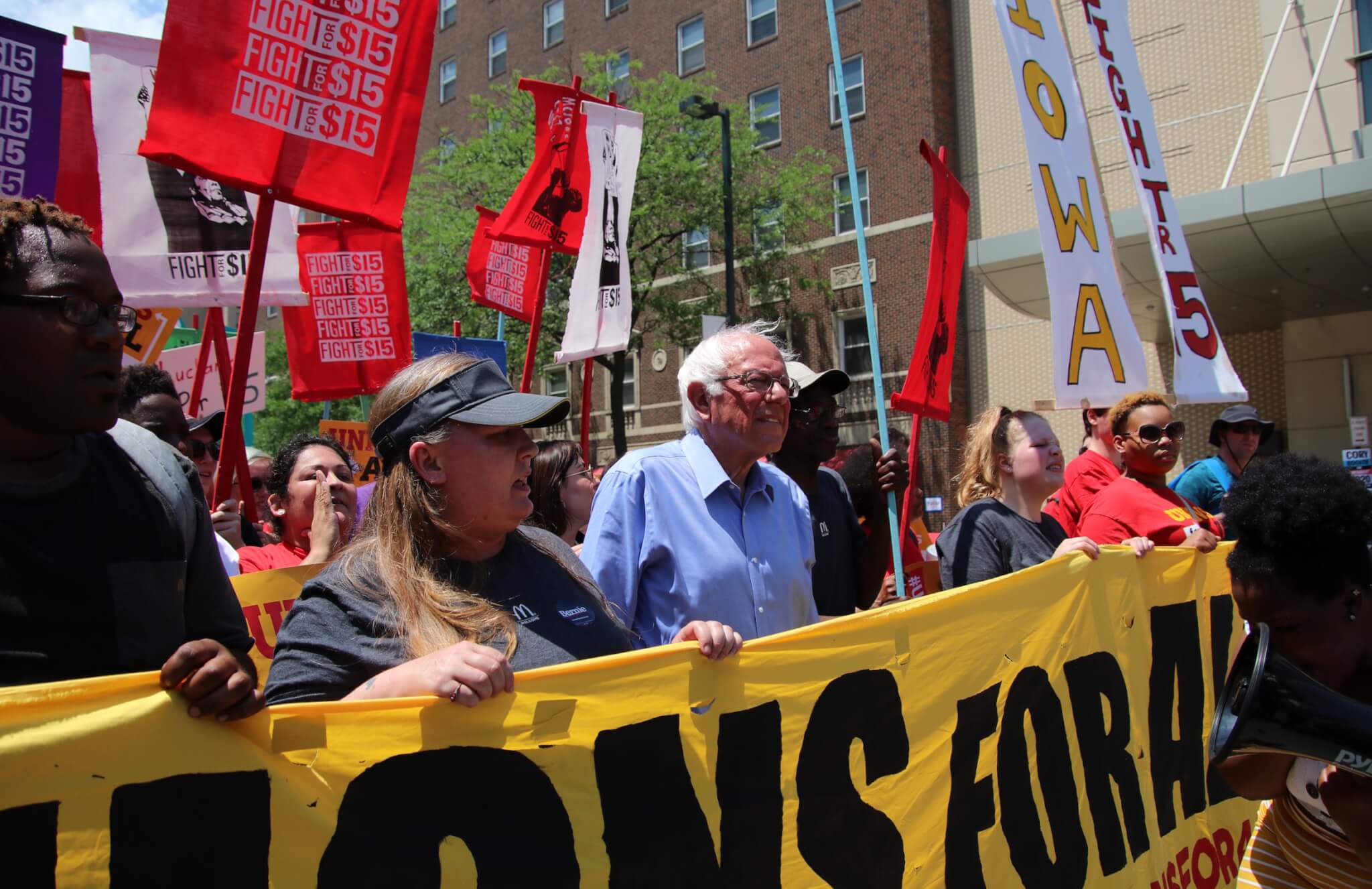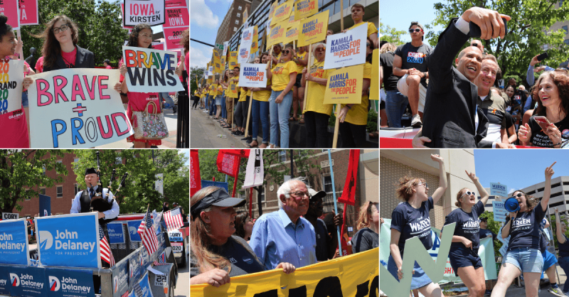 Not all campaigns participate in the game, though. Sanders’ 2016 team avoided it at early major Iowa events. But the senator still made quite the entrance, leading a march of hundreds of activists and striking McDonald’s workers who were advocating for a $15/hour minimum wage and a union.