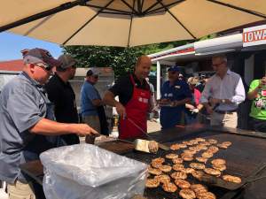He even stopped in the cattle barn, a quintessential stop at the Iowa State Fair.