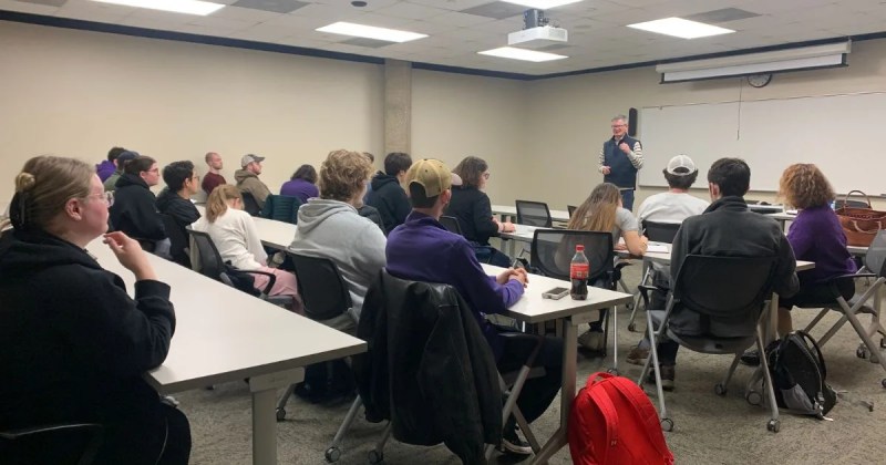 State Sen. Eric Giddens, a Democrat who represents parts of Black Hawk, Benton and Tama counties, held a listening post about why young people were fleeing the state at the University of Northern Iowa on Friday, Feb. 23, 2024.
