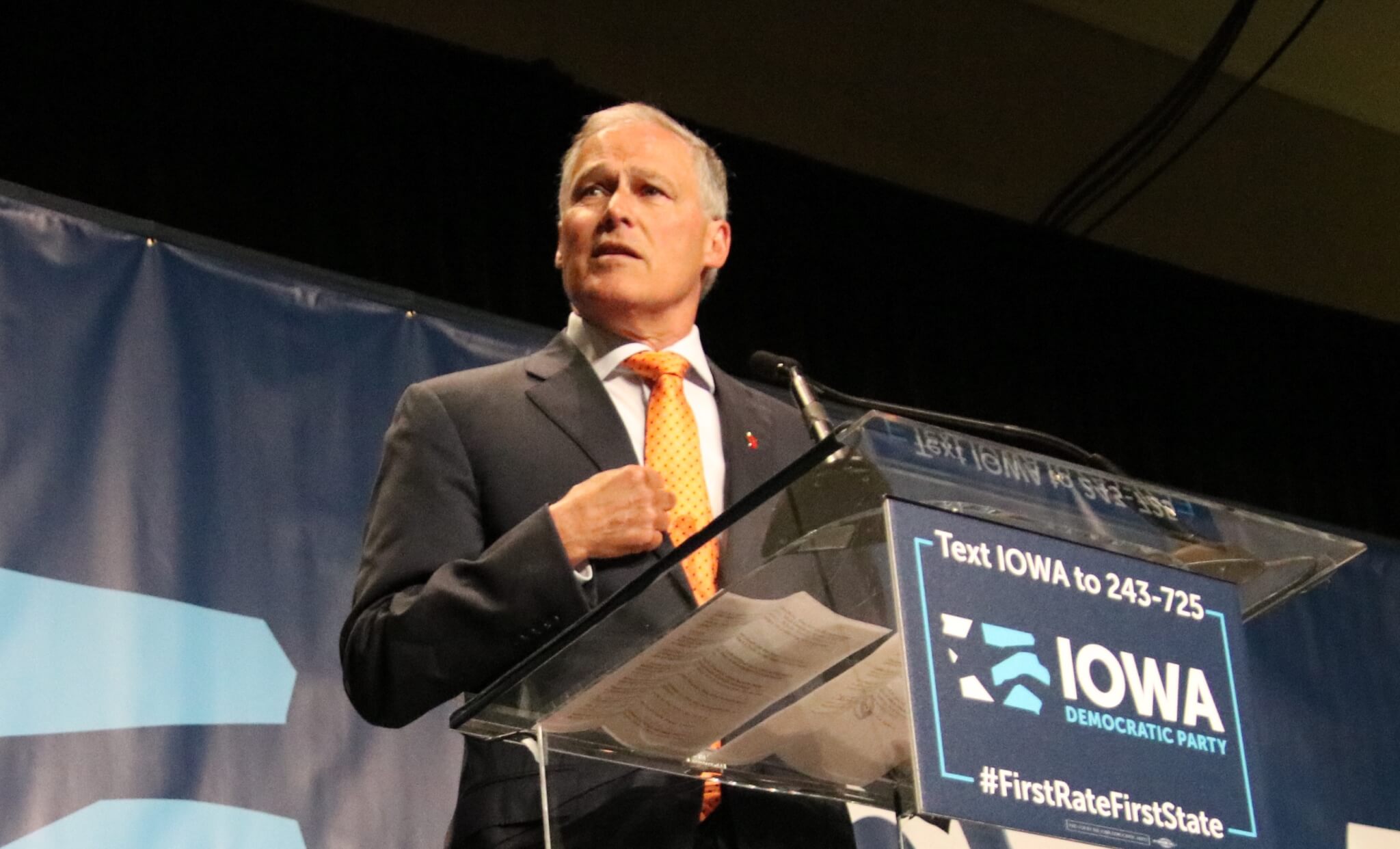 Summary: Governor Jay Inslee called for the Democrats to hold a debate surrounding the issue of climate change, which was met with applause from the crowd.