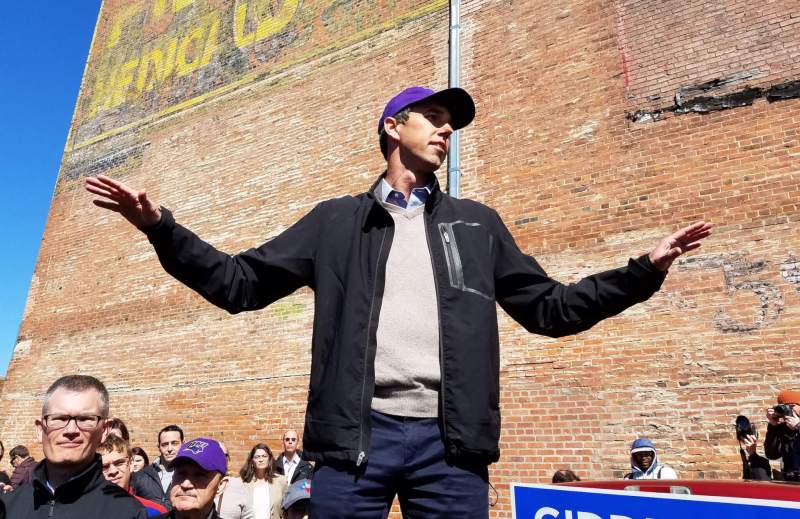 The “moment” for O’Rourke came on a sun-soaked afternoon in Waterloo, when he jumped onto the bed of a red pickup truck to address a crowd of 300. His booming voice echoing off the downtown buildings, O’Rourke laid out the 2020 fight in lofty, historic terms.