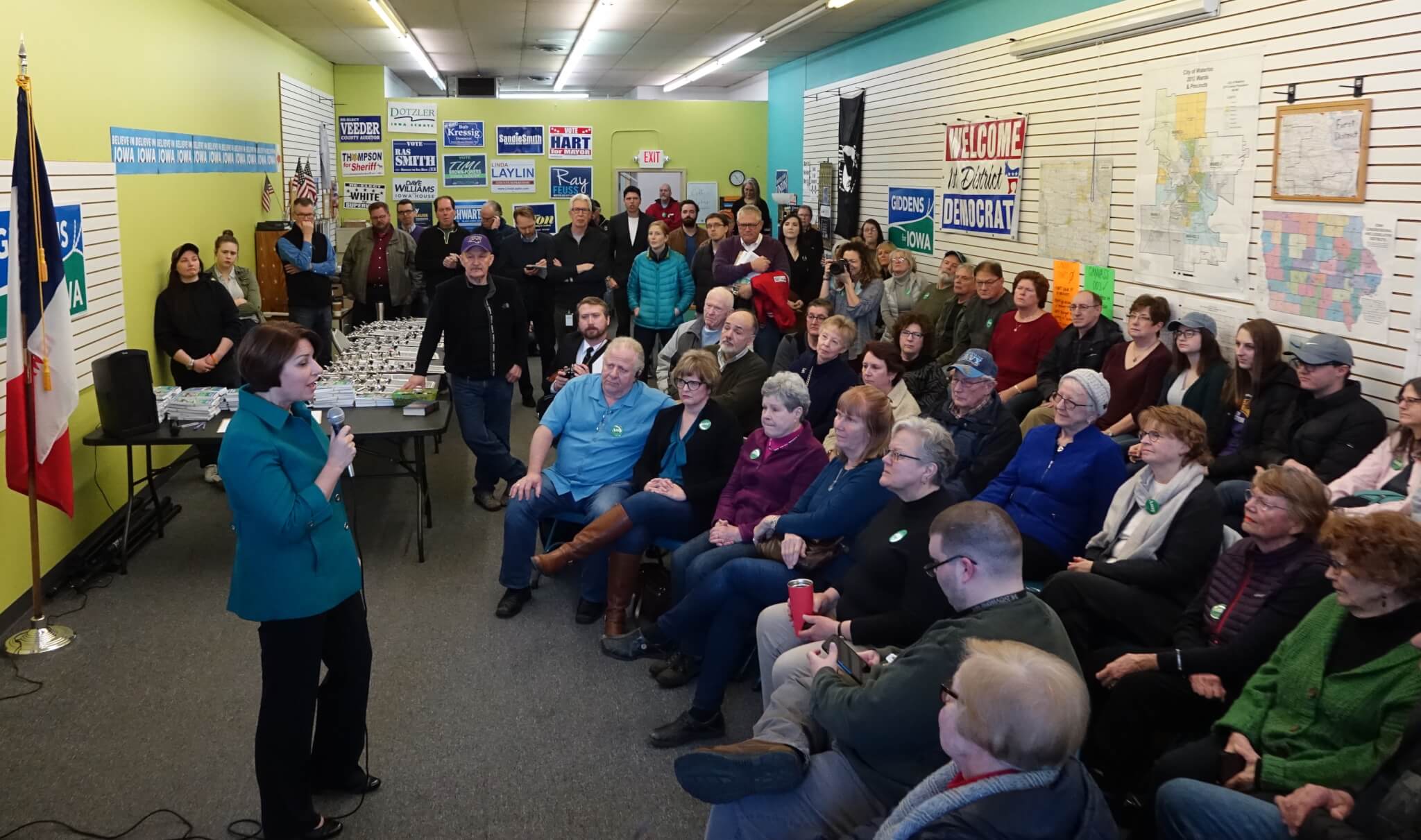 You might not think that the mere mention of Hubert Humphrey would get a candidate one of their best applause lines of the day, but this is Iowa. When Klobuchar mentioned the former vice president’s name in a story about his desk in the Senate, the older crowd of Democrats in Davenport cheered loudly.