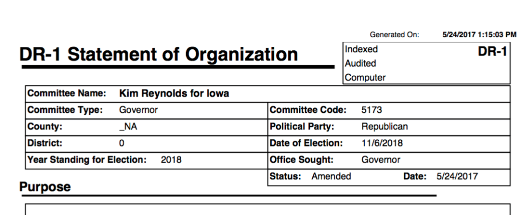 Kim Reynolds was sworn in as Iowa’s 43rd governor yesterday, but it certainly didn’t take her long to kick off her reelection campaign. On the same day that she laid out her policy agenda for the state, her staff amended her former lt. governor campaign committee to a full gubernatorial one named “Kim Reynolds for Iowa.”…