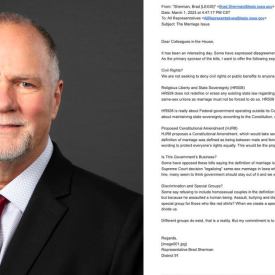 The lead sponsor of two bills that would outlaw gay marriage in Iowa—where it has been legal since 2009—told his Iowa House colleague his bills aren’t actually about banning gay marriage despite the language in the bills doing just that. Starting Line acquired a copy of an email Rep. Brad Sherman (R-Williamsburg) sent from his…