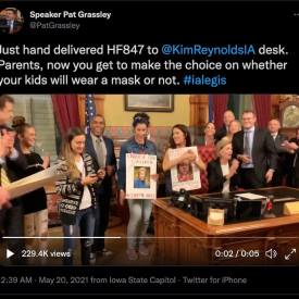 Reynolds Defends Mask Mandate Ban as will of Iowa Parents