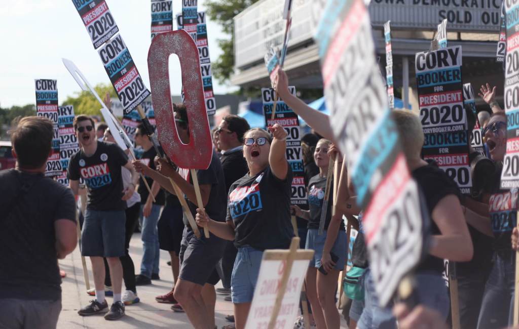 The presidential candidates, all competing for the attention of first-in-the-nation caucus-goers, largely relied on their go-to talking points at the Wing Ding. Some acknowledged the latest mass shootings in El Paso and Dayton, Ohio, that took 31 lives last week. Booker spent his entire speech on the violence, bringing the crowd to a hushed silence and finishing with an emotional call to action.