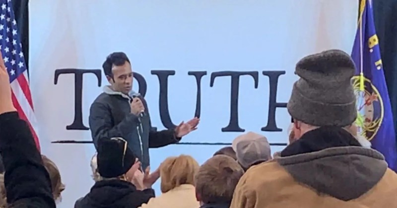 “He probably had the ‘B’ team around him yesterday,” Ramaswamy told a crowd of around 50 voters at the Elks Club in Waterloo on Monday morning.