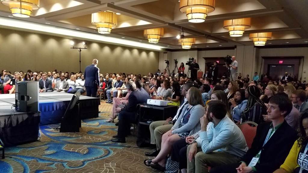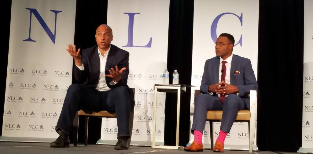 During his busy day, Booker stopped in at the New Leaders Council Millennial Forum at the Marriott in downtown Des Moines. He spoke for about fifteen minutes before doing a Q & A with the host for more than thirty minutes in front of a room full of young leaders from around the country.
