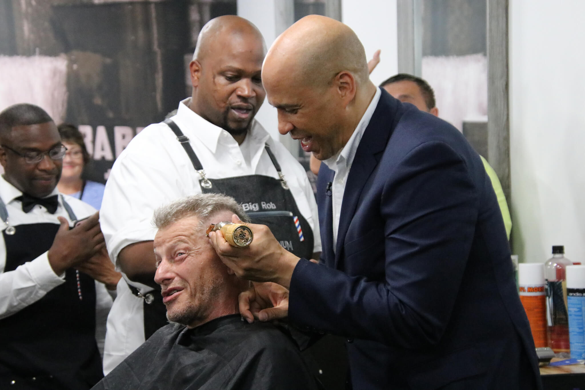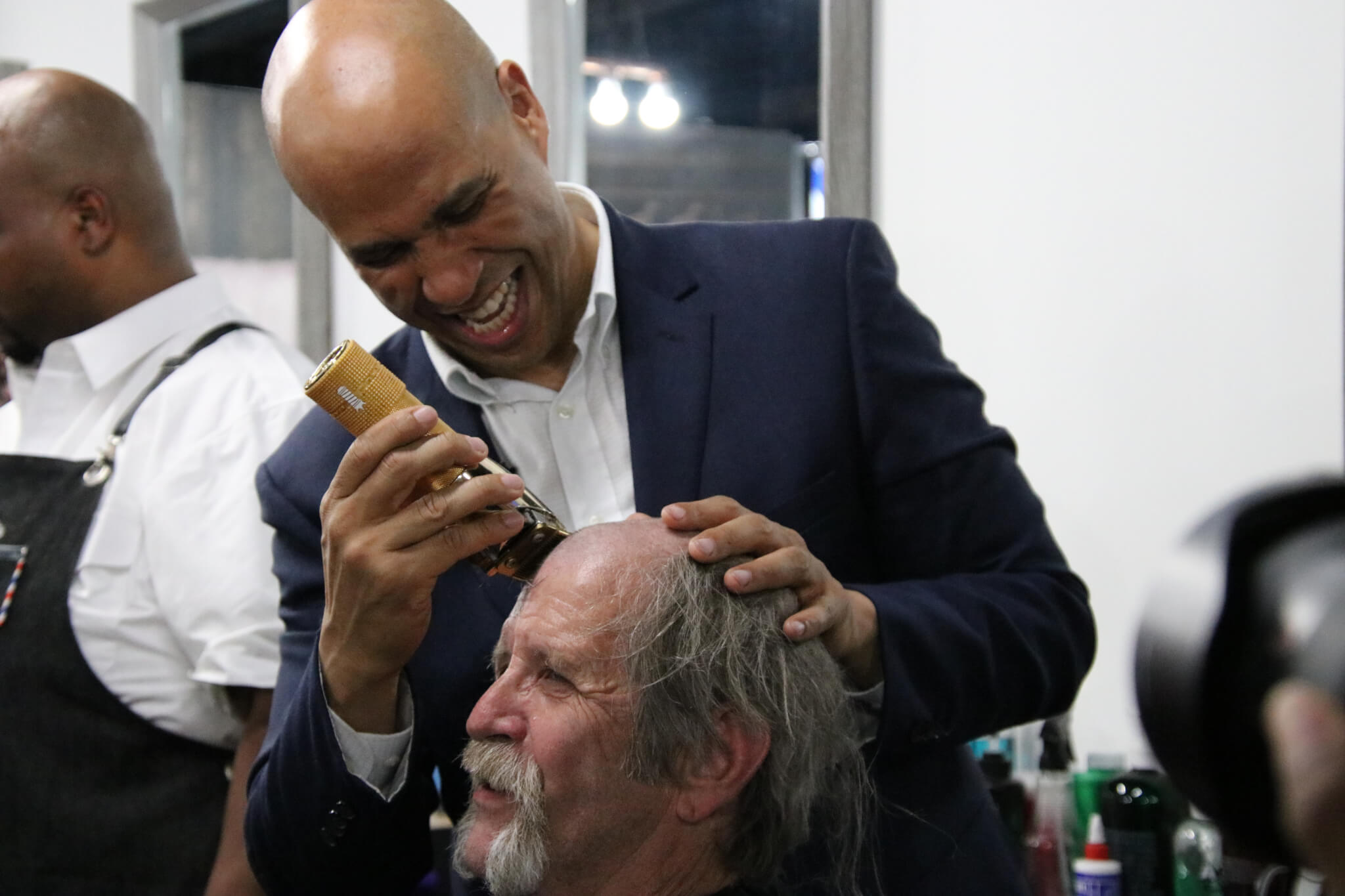 Head shaving turned into quite the spectacle, with Sen. Booker being handed a gold clipper to remove hair with. Laughing throughout the process, Booker welcomed three men to the hairless club in the name of charity.
