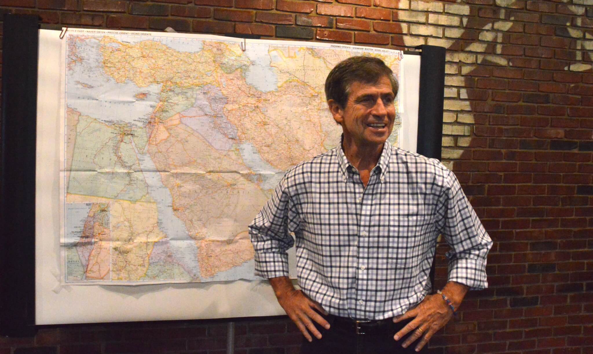 A retired three-star vice admiral, Sestak stood before a map of Iran on Saturday with a group of three dozen local Democrats and Chinese exchange students, explaining the dangers of abandoning diplomacy in the Middle East.
