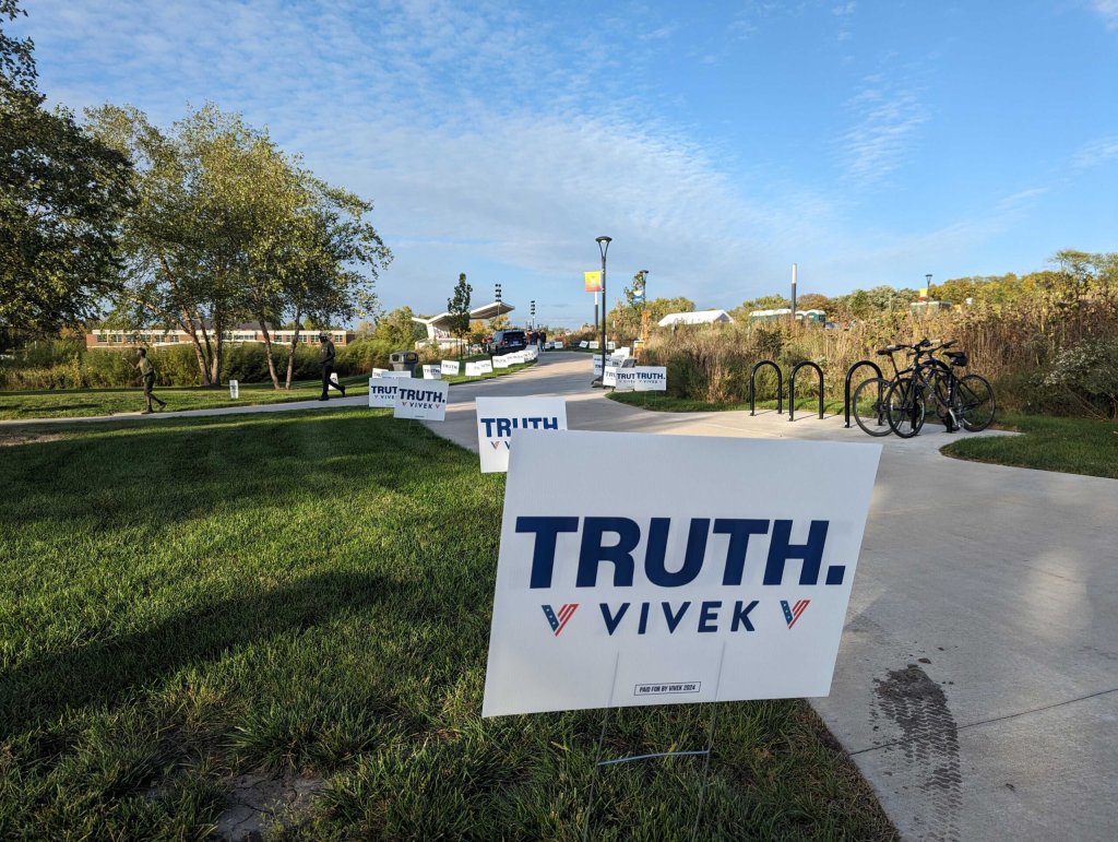 So a little after 5 p.m. on Thursday, I made my way to the West Des Moines city campus where the amphitheater is located and prepared myself for “Vektoberfest.” His team made sure people knew exactly where to go because Vivek’s “Truth” signs were everywhere.