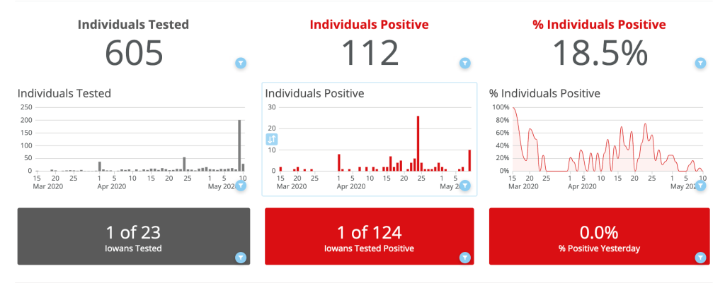Most of Allamakee County’s positive cases, however, came before this past week. April 24 saw a jump of 26 new cases in the county.