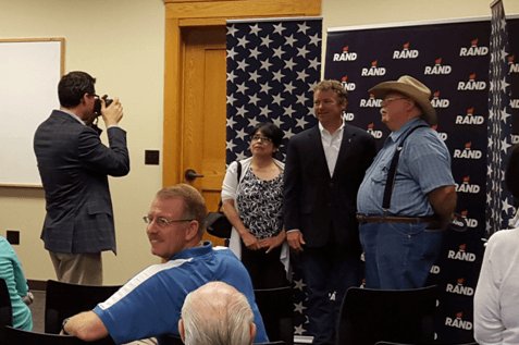 By not taking questions, Senator Paul ensured that he didn’t have to discuss uncomfortable topics or go off script. But the audience was obviously disappointed by the omission. Also off-putting was Paul’s awkward staged photo arrangement. The Paul family has always been a little abrupt when it comes to interacting with the public. Ron Paul often skipped photo ops (lest his cult-like followers carry him off into the crowd) and hustled out the door to his next event. But Rand Paul engaged his photo line in Sioux Center with the same enthusiasm that George Lucas reserves for a fan stopping him on the street to make suggestions about what should happen in the next Star Wars movie. Picture-takers were shuffled along so quickly they didn’t even have a chance to say their names or thank Paul for coming.