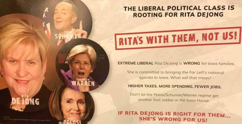 But Republicans’ recent mailer serves as an useful reminder for candidates of both parties for any office how a single, seemingly-benign post on social media can be distorted into a full attack ad. It’s certainly not the strongest or most-effective ad in an Iowa race, as plenty of voters that aren’t hardcore Republican partisans should be able to see through the silliness of the claim. But if enough Trump supporters in the district come to see DeJong as an extension of the national Democrats they despise, it may be enough to get them out to the polls. The same tactics may not be as effective for Republicans in the more traditional swing districts for the general election in 2018.