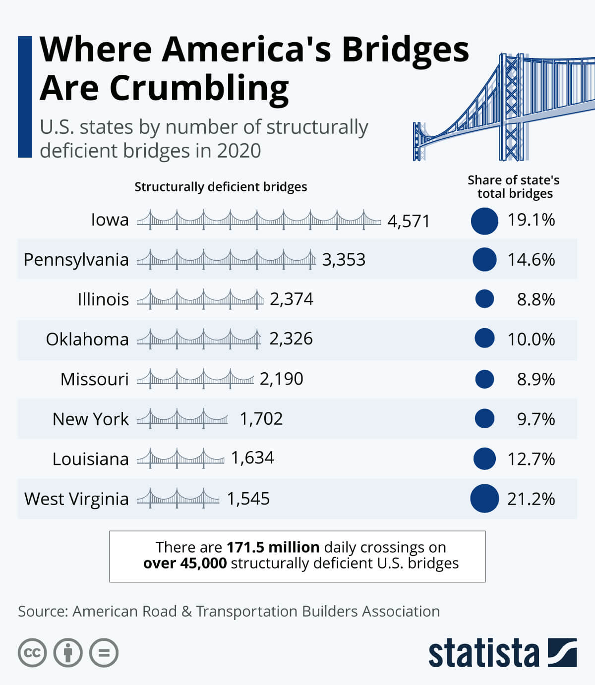 Here’s a big problem this could impact: We need a lot of bridges rebuilt in the coming years.