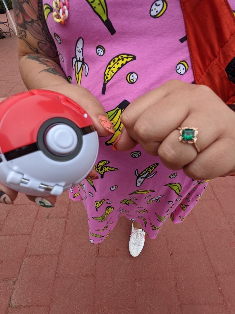Adriana’s back was turned while she was taking in the view and I retrieved the ring and Poké Ball from Erin. Before I go on, I’m sure you’re wondering what the deal with the Poké Ball is, so let me explain it real quick. I love Pokémon. In the original anime, whenever the main character gets ready to use a Pokémon in battle he yells out the Pokémon’s name and says “I choose you” before throwing the Poké Ball.