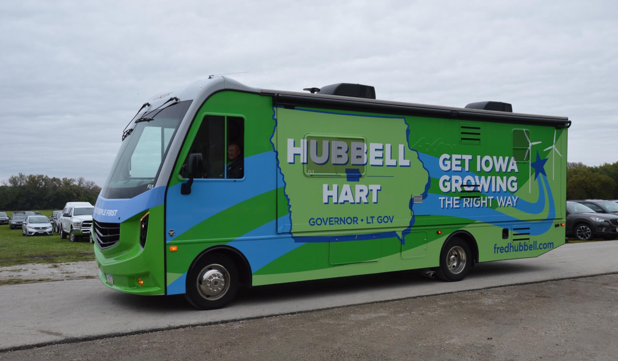 And Fred Hubbell unveiled his own brand new campaign bus at the event.
