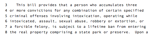 Senate File 55 – Ban Repeat Offenders From State Parks