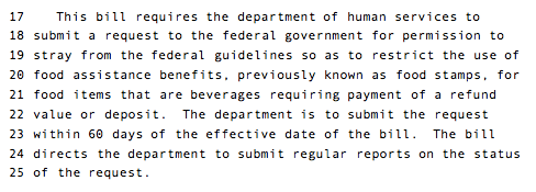 Amy Sinclair has a few minor bills she’s introduced, including this one that would ban people from using food assistance benefits on beverages that have the refund deposit (like the five cents refund for soda cans). Why is this deemed a pressing problem to the State of Iowa by Senator Sinclair? Probably because it’s a common conservative fever dream that poor people are going around, buying up packs of soda with their food stamps, emptying them out, then returning them for cold hard coins at a redemption center, in order to go buy, I don’t know, probably booze or drugs. That’s one convoluted system to misuse taxpayer money, and it doesn’t even really happen in real life. But it’s a chance to demean and vilify people who are struggling to get by in our economy, so that’s why you see these bills get proposed by Republicans from time to time.