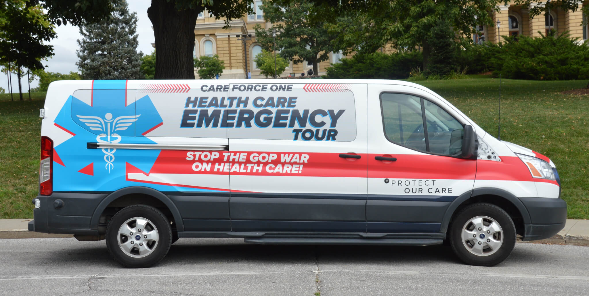 The Protect Our Care bus tour will continue until the end of August. The ‘Care Force One’ bus will be in Cedar Rapids, Iowa, on Tuesday as it keeps trucking along on its tour from Las Vegas to Atlanta.