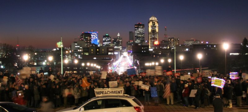 Last night, people around the country took to the streets to demand accountability for Donald J. Trump, the fourth president in history to face impeachment. In Des Moines, hundreds of people gathered on the steps of the Iowa Capitol building with signs and chants. Protesters assembled in five other cities in Iowa, from Sioux City,…