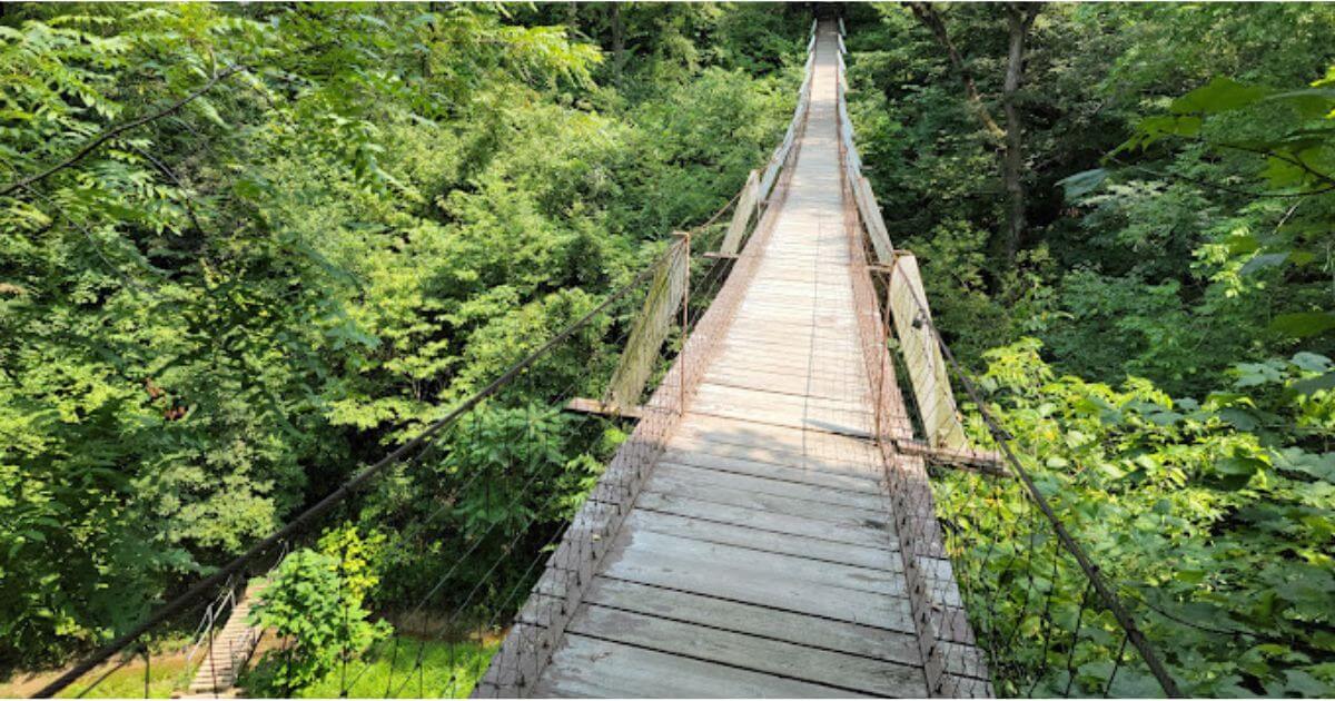 Located in Columbus Junction, this bridge—also known as Lover’s Leap Swinging Bridge—turned 100 years old in 2022, according to WQAD.
