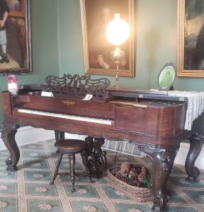 Several original pieces of furniture and art, including the family’s grand piano and a portrait of Abraham Lincoln, are in the house.