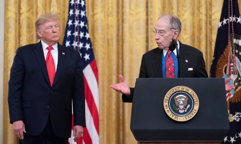 Sen. Chuck Grassley, former chairman of the Senate Judiciary Committee, was at the event. Grassley has previously boasted about this achievement. Last night, Grassley praised Trump for accomplishing what he promised voters he would during his 2016 campaign.