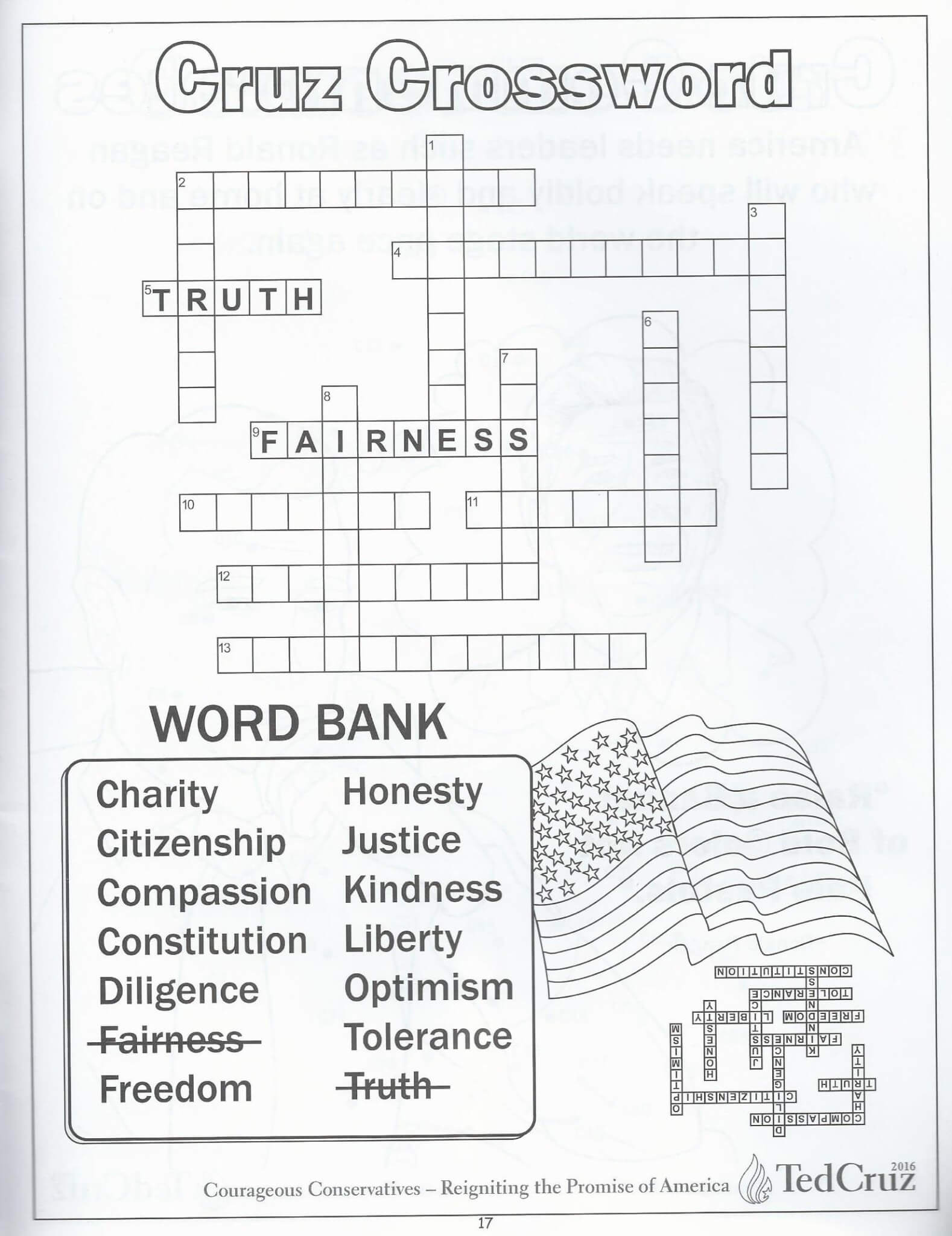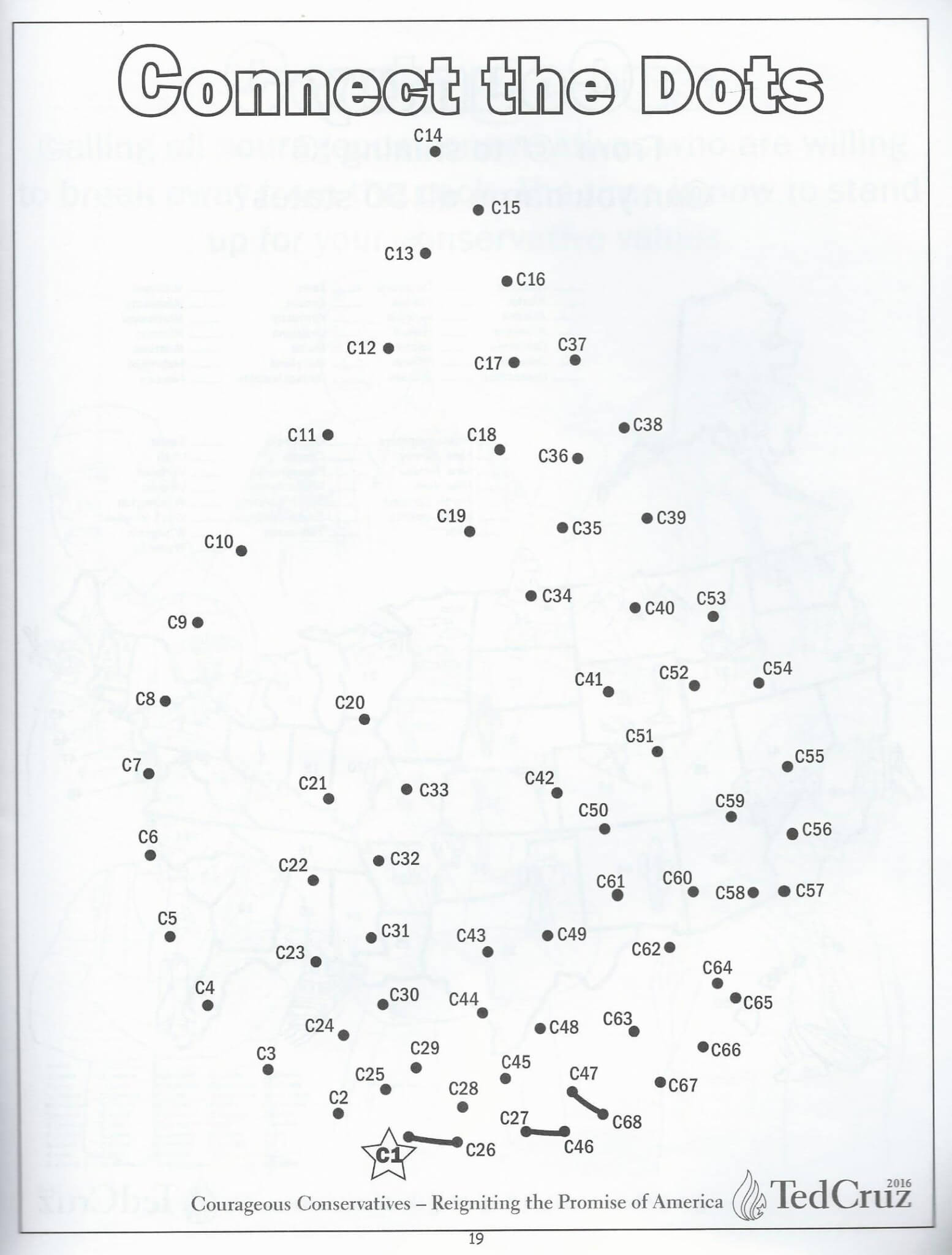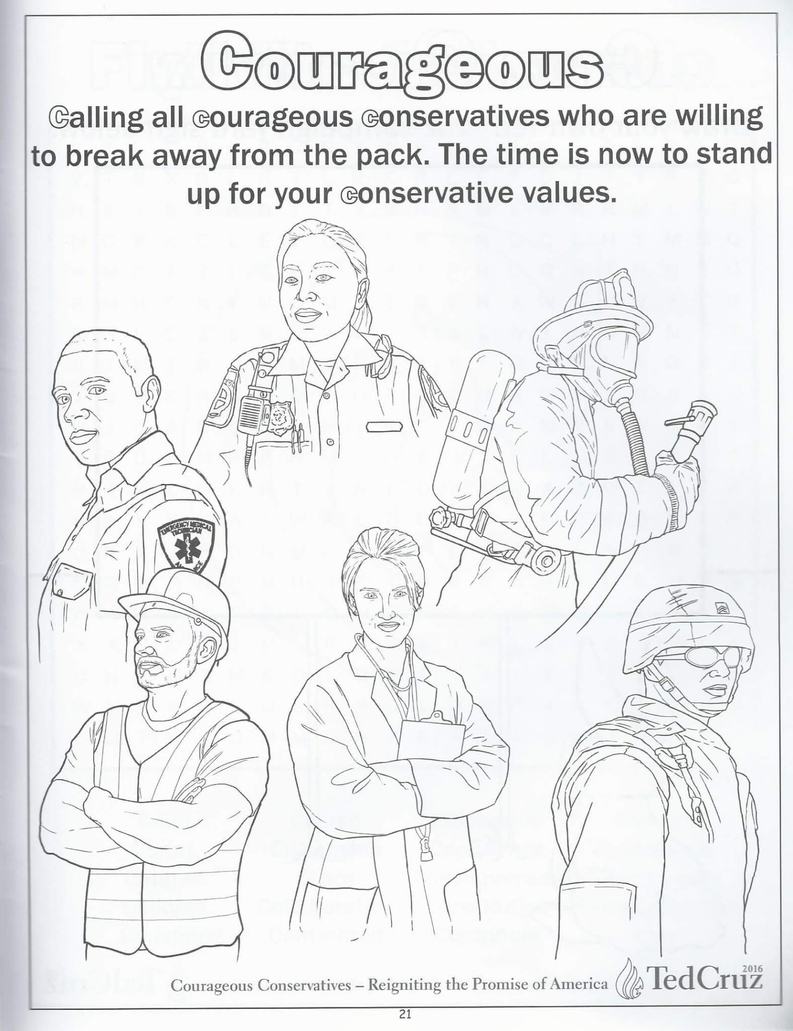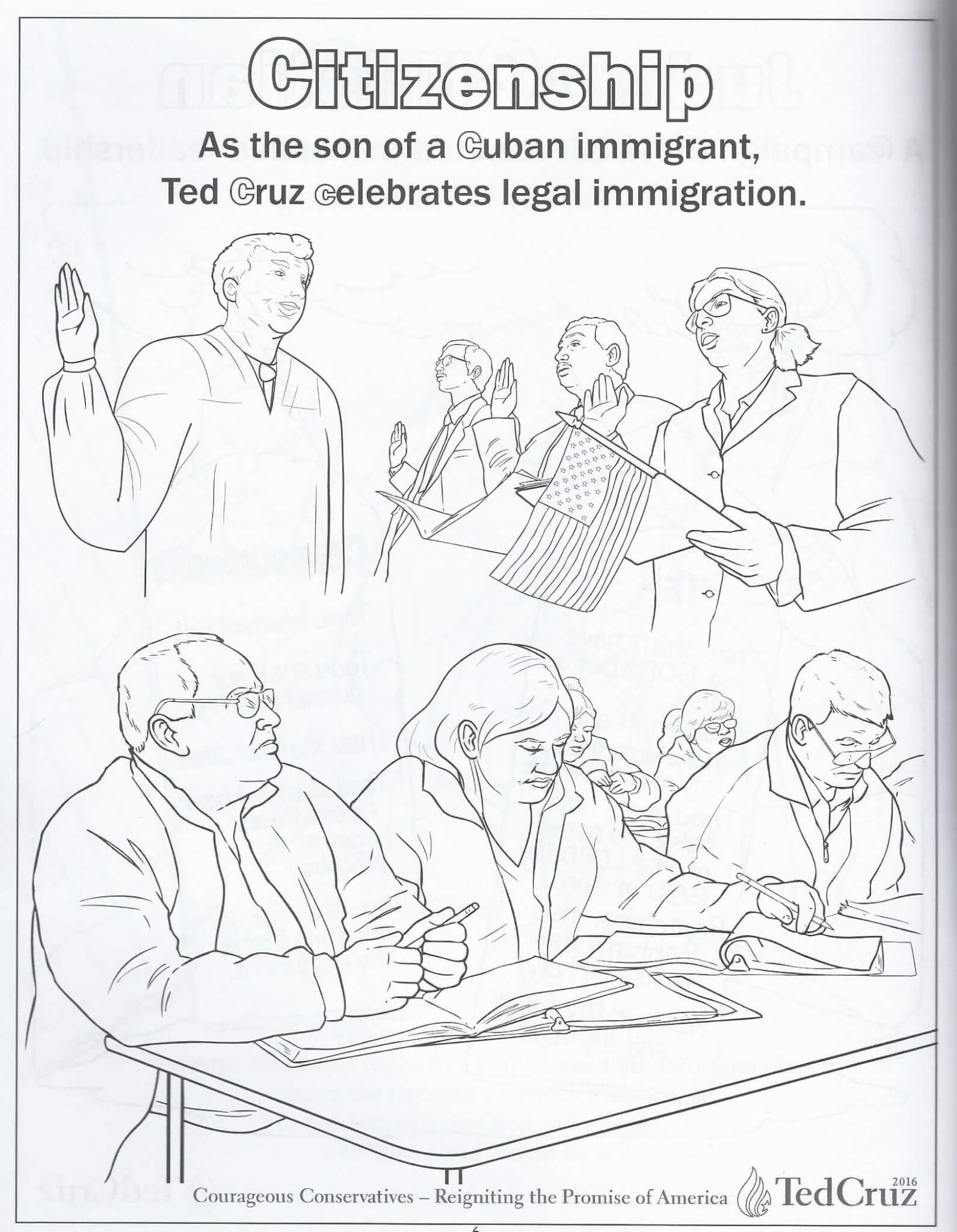 But the coloring book itself? Boy, it’s something else. 30 pages in length and produced by a professional children’s coloring book company, one can only imagine how much money they spent on this. The pictures themselves are, uh, pretty interesting. So let’s take a look at some of the best pages in the Cruz campaign’s coloring book and have some fun adding a little commentary of our own to the illustrations.
