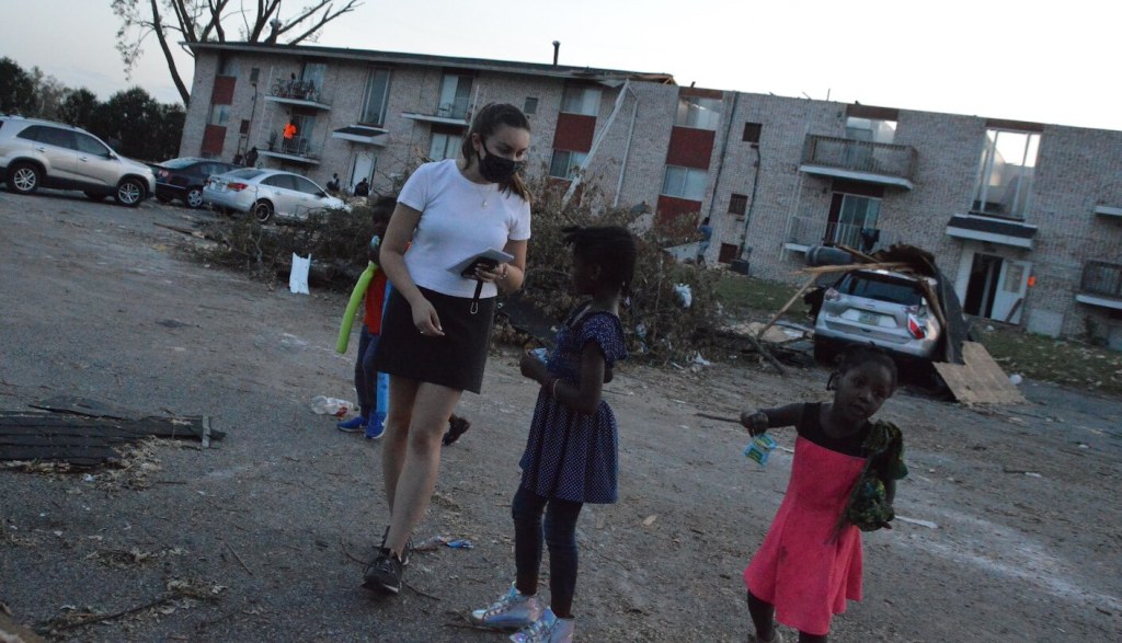 Starting Line’s Isabella Murray was the first reporter at the complex, five days after the storm hit. Our tweets showing the devastation and refugees who were impacted quickly went viral, and in the days to come, a flood of assistance and news coverage came to the neighborhood that had been largely ignored for days. After we tweeted that residents needed shelter, some of our readers showed up a few hours later with tents.