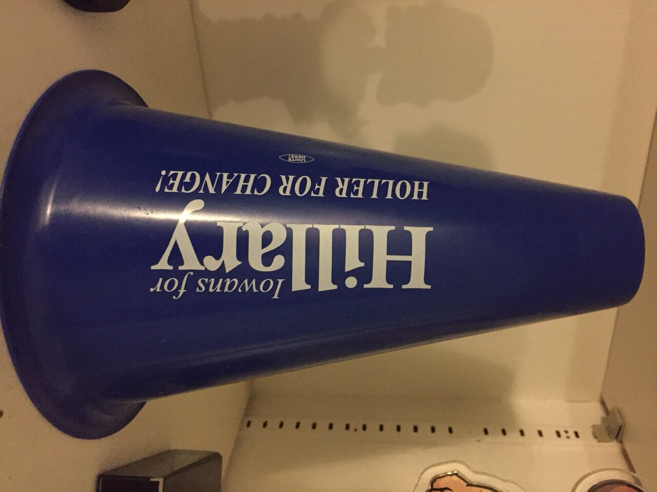 Every Democrat loved the Steakfry. Sadly, I can’t find my old photos of the 2003 and 2007 Steakfry’s right now (they’re in a box somewhere), but those two days remain some of my favorite memories of all my time in Iowa and politics. The 2003 one was a muddy mess, with sign-waving supporters for Kerry, Dean, Edwards and Gephardt sporting plastic ponchos. The 2007 Steakfry featured the Obama campaign’s big show of organizational strength when then-Senator Obama led a boisterous march of thousands of Iowa Democrats into the field. I also got one of my favorite pieces of ridiculous campaign chum there, the “Holler for Hillary” horn, which still sits above the desk I’m typing this at.