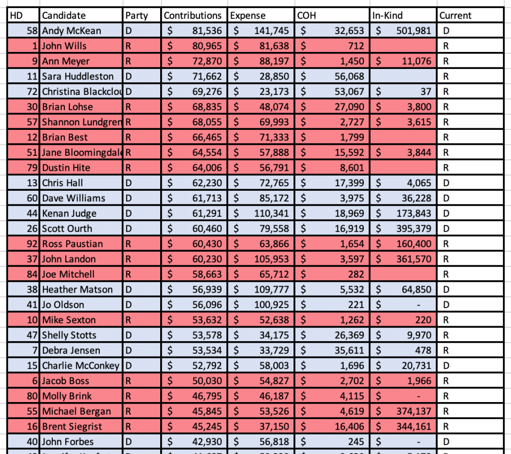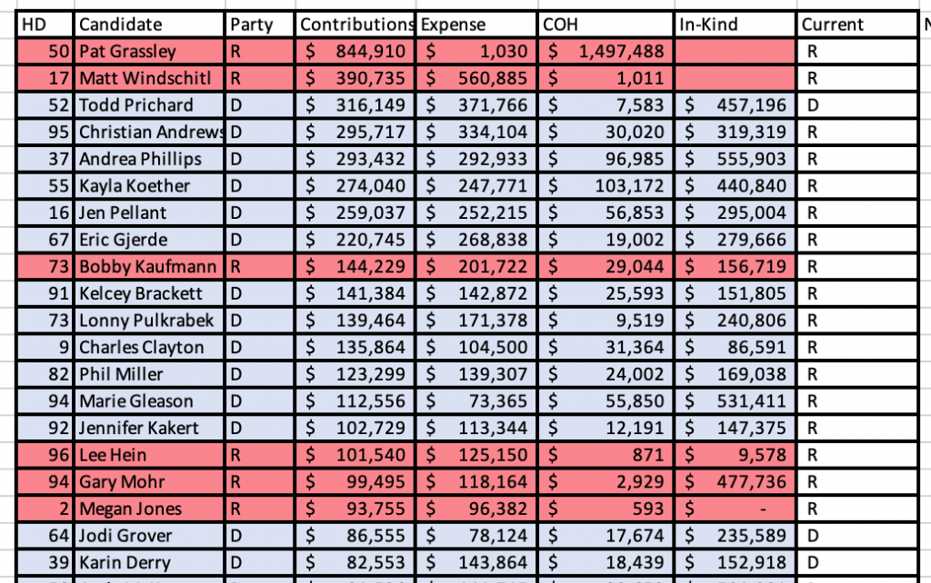 For Democrats, it’s the challenger candidates themselves that are bringing in the bulk of the money. While Democratic Leader Todd Prichard leads his caucus with $316,000, the non-incumbent candidates are posting eye-popping fundraising totals. Small dollar donations are fueling massive fundraising totals for first and second-time candidates, those who don’t have near the number of connections as incumbent legislators.