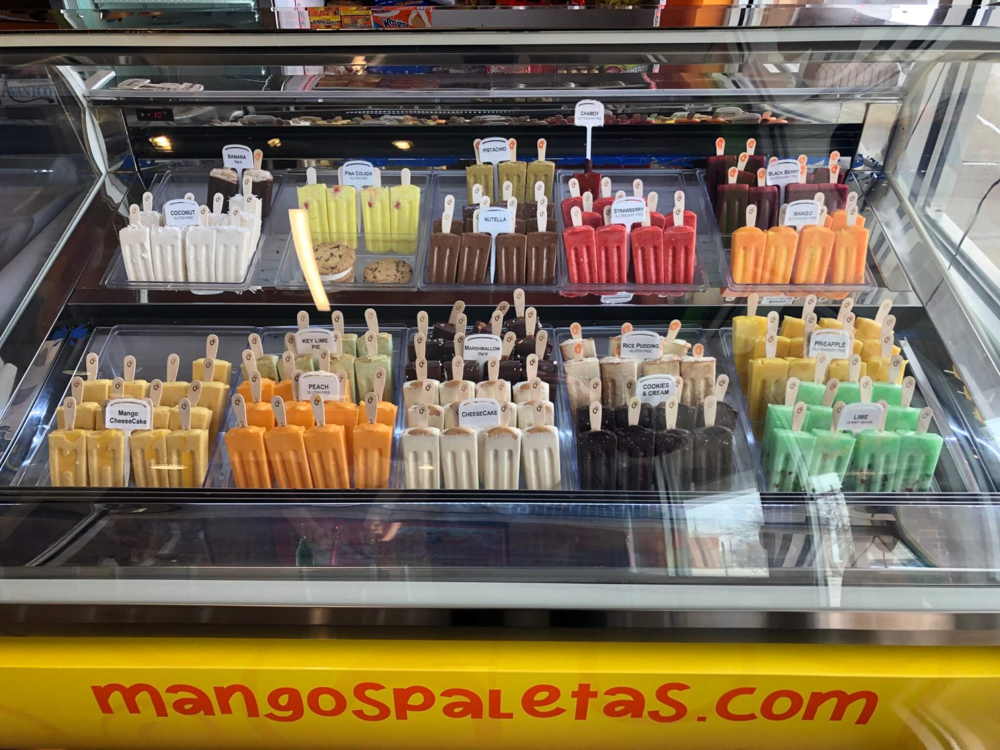 When you walk into La Premium Michoacana in Des Moines, take in the smell of this appetizing locale. This joint opened in January 20021 and has every Mexican dessert food imaginable from ice pops/paletas, ice cream, mangonadas, aguas frescas, chocolate bananas, and other snacks. The desserts are made fresh each day.