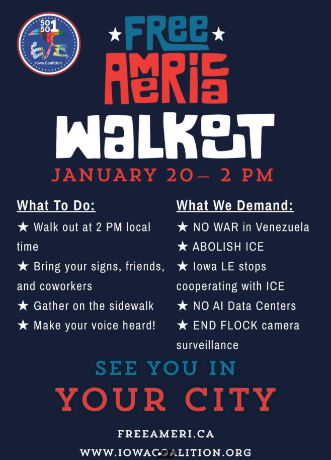 4 Corners Weekly Peaceful Protest: 4:30 p.m. Thursdays, near the Casey’s/Methodist Church in Panora