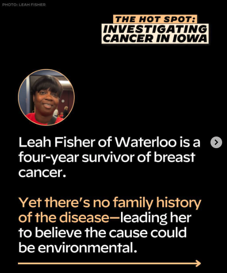 Concerned about Iowa’s rising cancer rates and want to do something about it? Consider forwarding this story to your state lawmaker. You can look up their email address here.