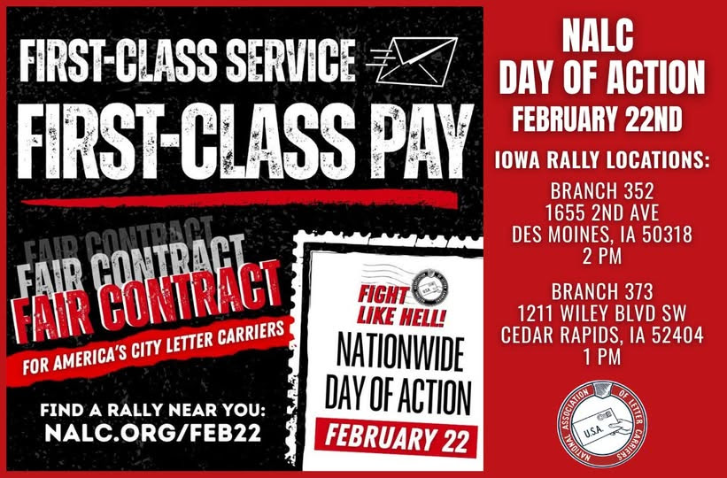National Association of Letter Carriers Day of Action: 2 p.m. Sunday, USPS Post Office Branch 352, Des Moines