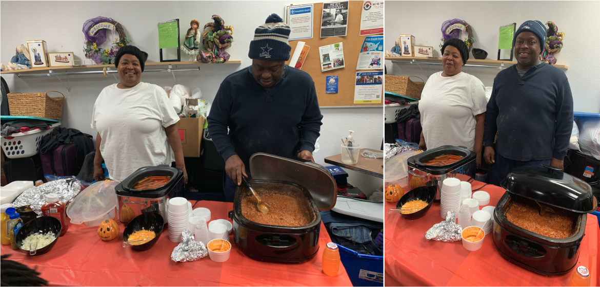 But he also takes his free food on the road: He went to Ferguson-Fields Park during the summer, feeding kids who came to play basketball or hang out. He teamed up with Cedar Valley Thrift owner Karmin Teague (pictured, left) to give out chili and hot dogs at her store on Halloween. And for Thanksgiving he’ll be feeding folks at the Salvation Army men’s shelter, while Karmin feeds the women’s shelter. (Watch this space for more on Karmin next week!)