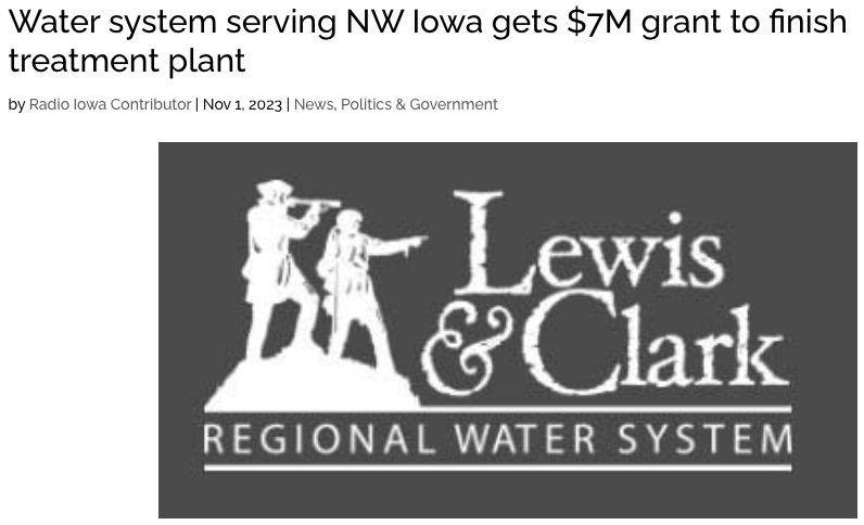 The Biden administration this week announced a $7 million boost in funding to finish the Lewis and Clark Regional Water System, which already serves three western Iowa cities and will serve two more in the coming years (Sheldon this November, and Sibley in 2025).