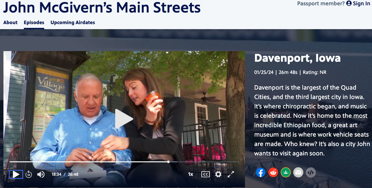 As a Muscatine native, I always thought of Davenport as the “big city.” But in a new episode of the PBS show, “John McGivern’s Main Streets,” it definitely feels like small-town America.