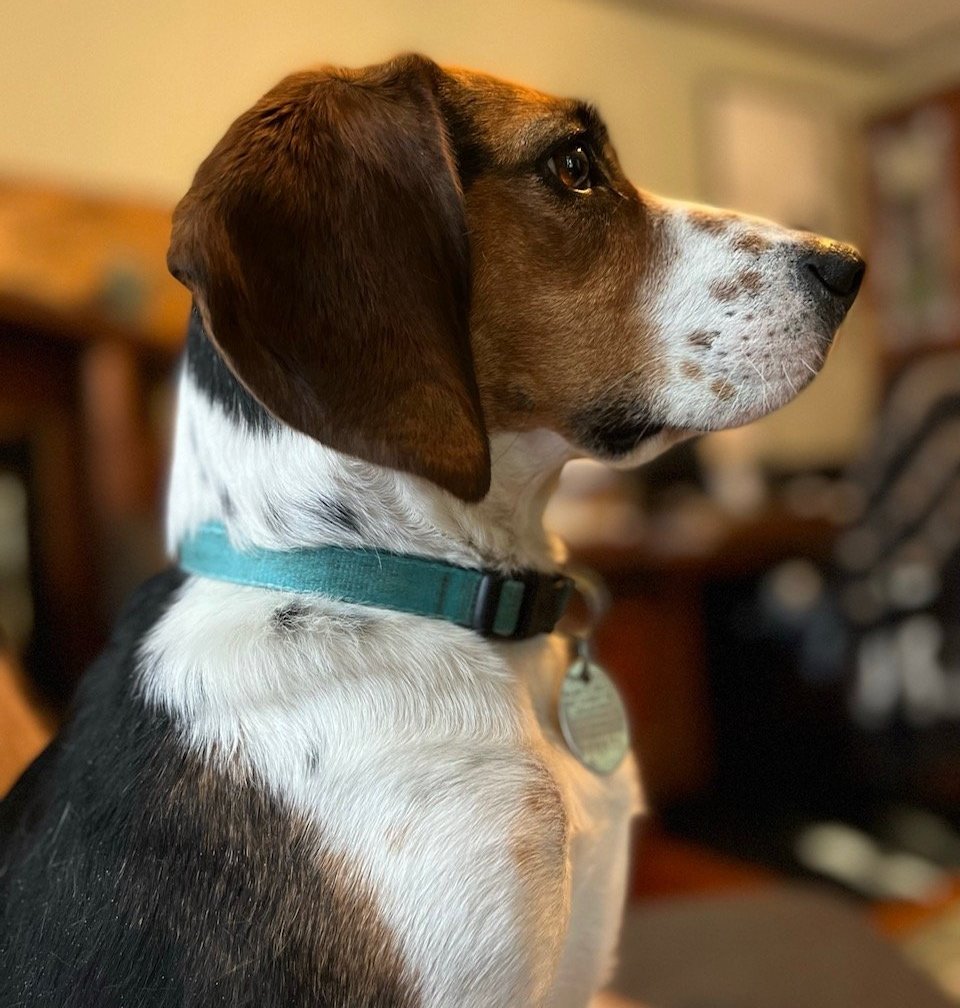 This is Lucy the beagle. She’s obsessed with the smell of squirrels, long walks in the snow, and digging nests out of blankets on the couch.