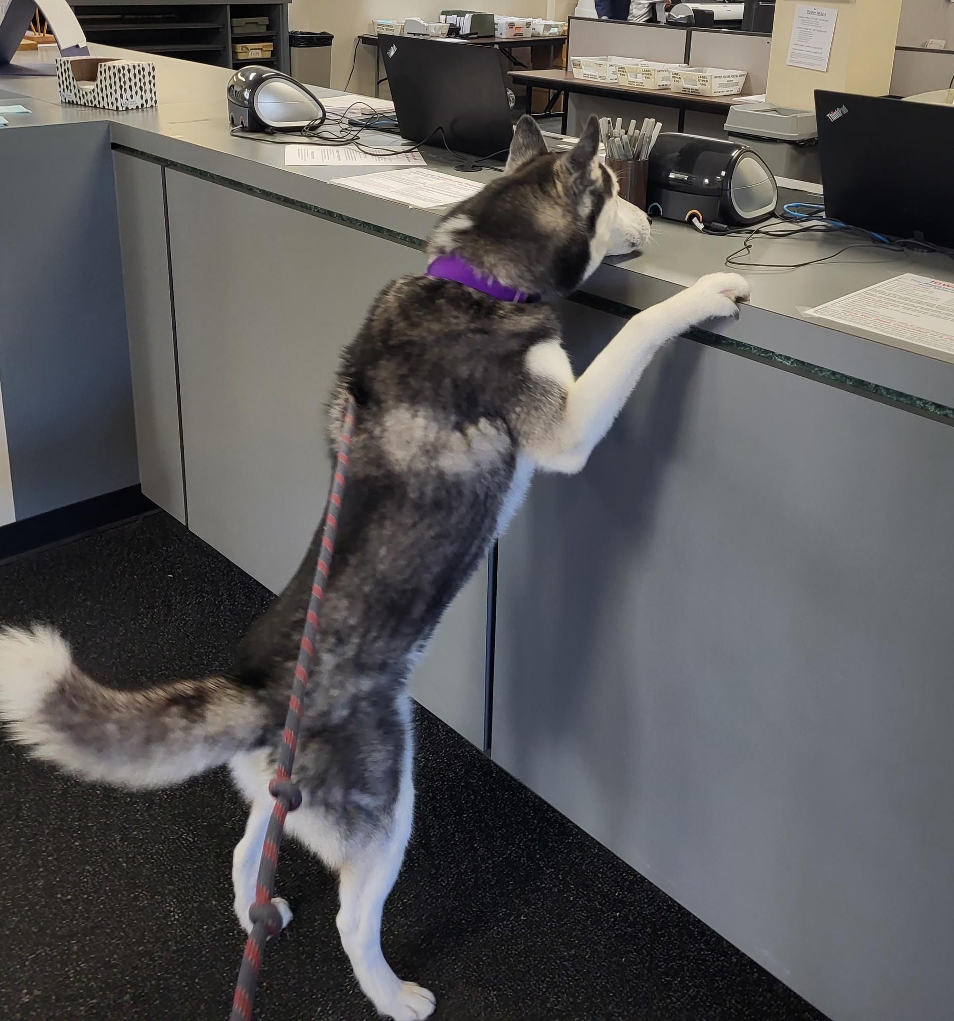 This is Bear, who was the “first dog in line for early voting” this week. Good job exercising your civic duty Bear!