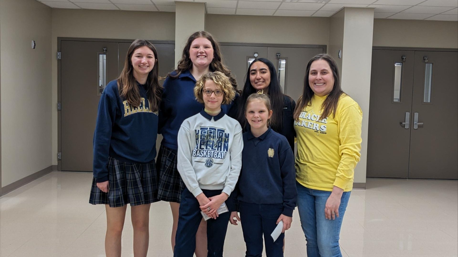 Abby Billings (right), with some of the students involved in Miracle Makers: In back row: Kiki Tott (grade 11), Jolee Kueny (grade 12), and Alexa Prieto (grade 11), and fourth-graders (in front) Macie Jo Canoles and Charlotte Kvidera.
