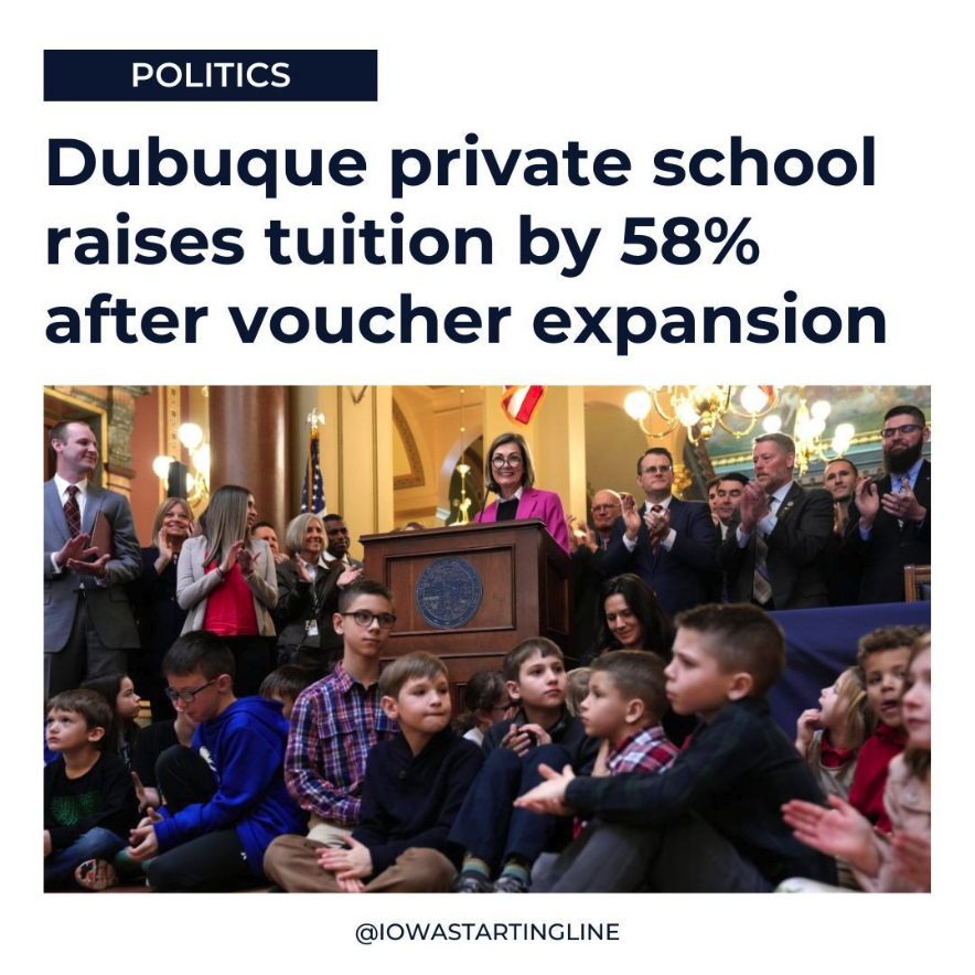 A study found that kindergarten tuition at Iowa private schools shot up between 21% and 24% since the voucher program began.