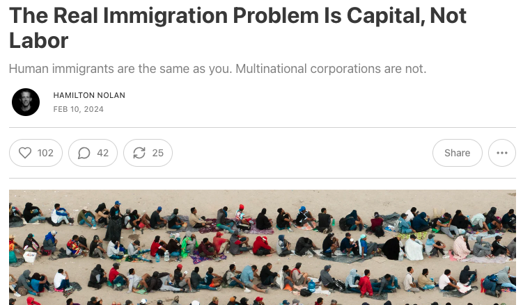 “When you think about our national political debate over immigration in this context, it is clear that we are lunatics,” says Hamilton Nolan in this