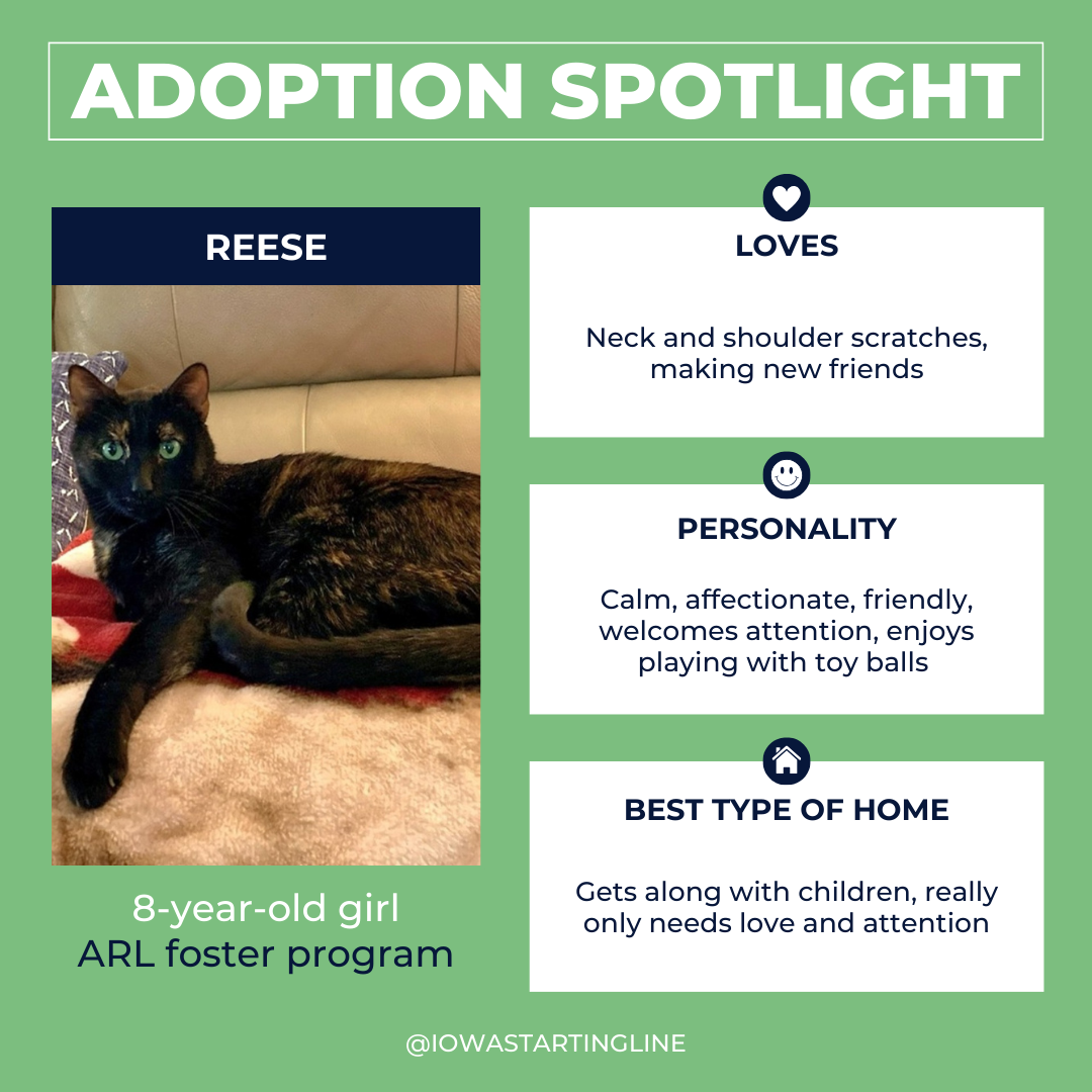Reese is an affectionate kitty who would love to make a home with you. She loves attention and playing. If you give her a chance to warm up, she’ll be your best friend.