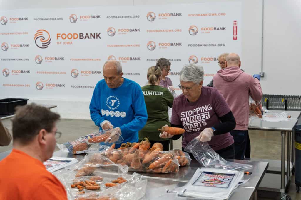 Food Bank of Iowa volunteers sorting carrots. (Food Bank of Iowa)