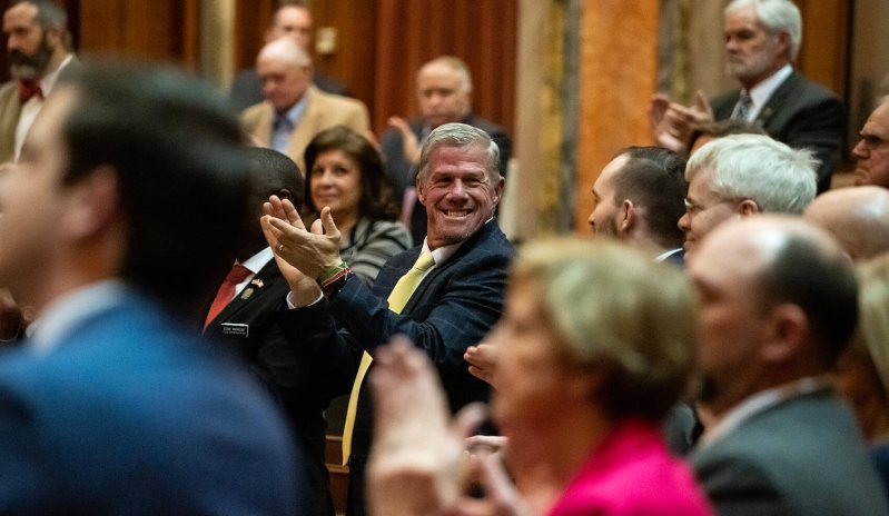 Iowa Sen. Brad Zaun, who voted to pass five of these six policies (he was absent for the flat tax one), shown here at the Iowa Legislature.