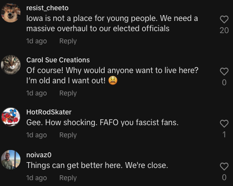 Iowa’s economy sucks, and the trade wars have just started: Besides the national economy going into reverse, economists are warning Iowa’s labor market “continues to stagnate,” and that’s before tariffs have really hit soybean farmers and pork producers. We’ll know how bad it is once the April jobs report comes out next week. (CBS, Axios)