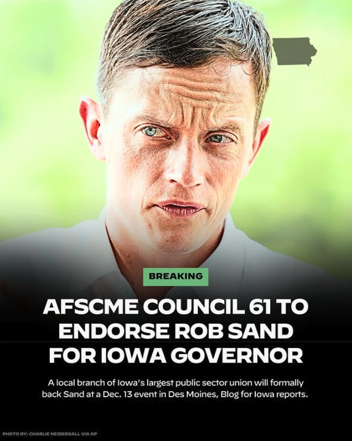 - Union endorsements: The Plumbers & Steamfitters Local Union 33 in Central and Western Iowa endorsed state Sen.