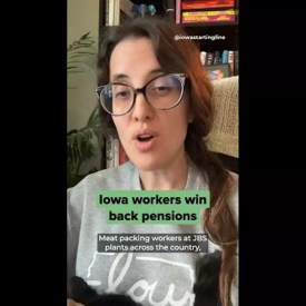 Meatpacking workers at JBS plants across the country, including two in Iowa, just ratified a first-ever national contract across all plants. And they got their pensions back for the first time in nearly 40 years. Comment WORKER to get these stories in your inbox without relying on the algorithm!